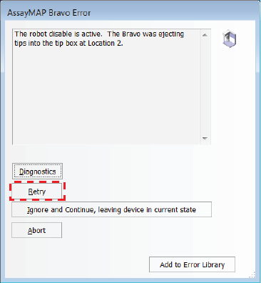 3 In most cases, the AssayMAP Bravo Platform will be able to resume the run where it left off.
