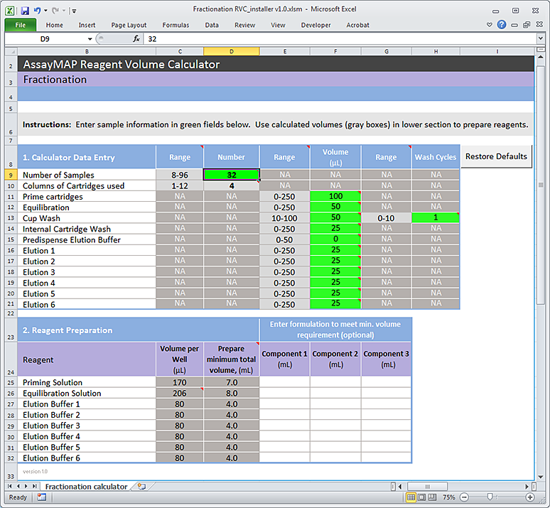 2 Locate Fractionation, and then click Calculator. Microsoft Excel starts and displays the calculator.