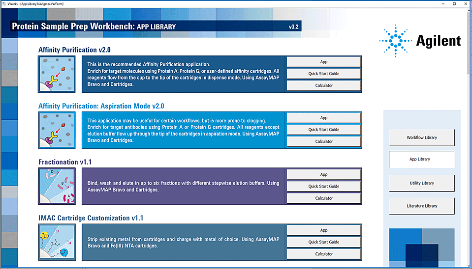 • If you have already logged in to the software, click the App Library button in any of the other libraries of the Protein Sample Prep Workbench.