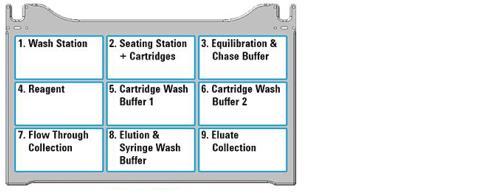 Agilent part number See How to store prepared cartridges for guidelines on cartridges that are to be stored for longer than 10 minutes.The following figure shows the nine Bravo deck locations for labware.