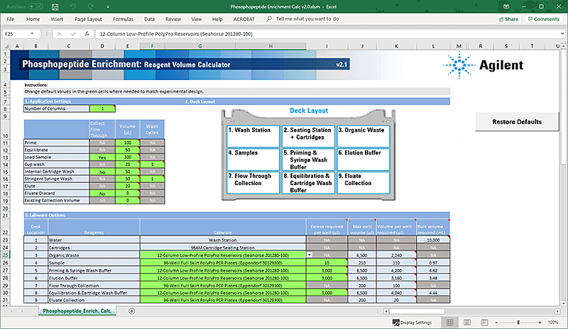 2 Locate Phosphopeptide Enrichment, and then click Calculator. Microsoft Excel starts and displays the calculator.