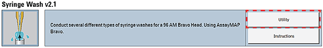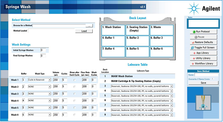 • Initial Syringe Washes. The number of standard Internal Syringe Washes to be conducted using the wash station at deck location 1, before starting any of the syringe washes.