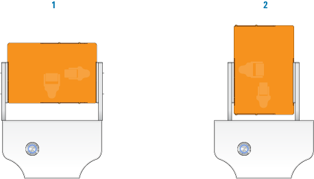 Supplied with the BenchBot Robot, the teaching plate allows you to set teachpoints quickly and accurately. The teaching plate can be used for setting teachpoints in the landscape (1) or portrait orientation (2).Note: Most device locations can be taught using the teaching plate. However, if size restrictions at a teachpoint prevent the use of the teaching plate, you can use the labware intended for the location. For more information, see Setting teachpoints using a labware.