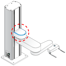 The button below the bicep that turns off the z-axis brake and allows you to move the robot arm manually along the z-axis.