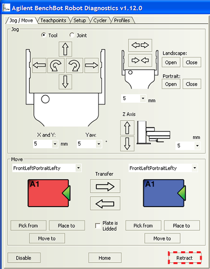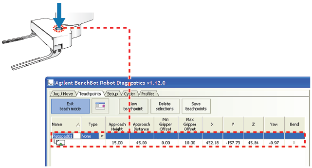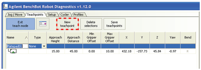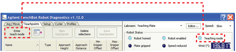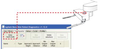 Note: In tight-fitting or hard-to-reach locations, you can use the jog commands in the Jog/Move tab to move the robot in small increments. For more information about the jog commands, see Jogging the robot. When you return to the Teachpoints tab, be sure to click Enter teach mode before proceeding to the next step.