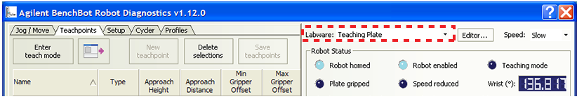 • You have the provided BenchBot Robot teaching plate. If size restrictions at teachpoints prevent the use of the teaching plate, use the labware intended for the location. See Setting teachpoints using a labware.