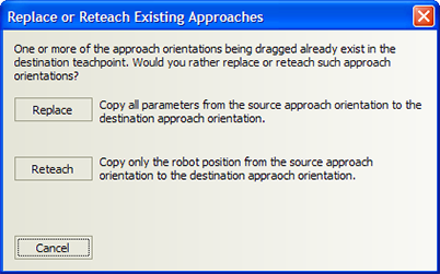 4 Click Replace. The existing teachpoint coordinates and parameter values are replaced.
