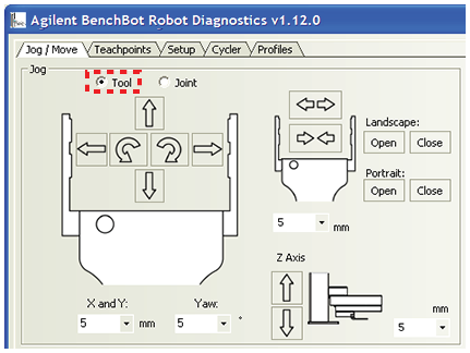 Note: This section explains how to adjust an existing teachpoint coordinates using the jog commands. Alternatively, you can reset the teachpoint using the procedure in Setting new teachpoints, and then use the Update command to update the coordinates.