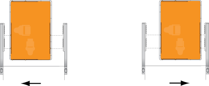 7 If the dimples on the robot grippers are farther out or closer than the pins on the teaching plate (as shown in the following diagram), in Tool space, jog the robot in small increments along the x-axis.