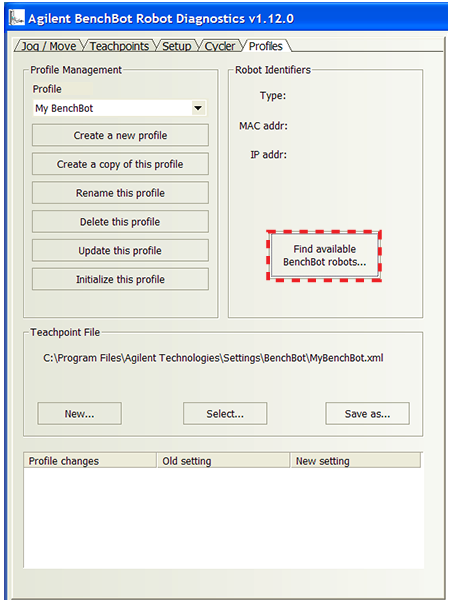 If you have more than one BenchBot Robot in the systemEvery device in the system must have a unique IP address for proper operation. All BenchBot Robots are assigned the same IP address at the factory. Therefore, if you have more than one BenchBot Robot installed in the system, you must make sure each is assigned a unique IP address. You can do this when creating a profile for the robot.