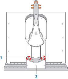 b Loosen the two large black bracket screws that prevent the x‑axis carriage from moving during shipping.