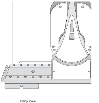 1 Depending on whether you are integrating a device to the left or right of the BenchCel device, loosen the left or right clamp screw using the 3-mm hex wrench. See the following figure.