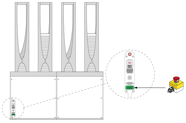 This topic describes how to connect the emergency-stop pendant to the BenchCel Microplate Handler.