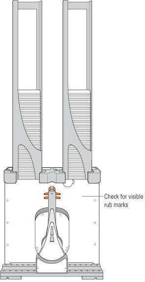 • Moving parts. Ensure they are not rubbing against each other. Look for rub marks or noises that might indicate rubbing. If you see rub marks, contact Automation Solutions Technical Support.