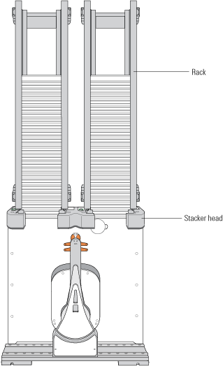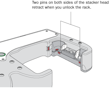 1 At the BenchCel Microplate Handler, verify that the clamps are closed (extended) in the stacker head.Note: To close the clamps, open BenchCel Diagnostics. On the Controls page, click Stacker at the top of the rack that you want to remove, and then choose Close Stacker Grippers.