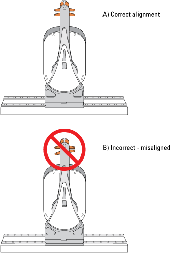 b Make sure the bottom of the robot gripper pads are perpendicular to the robot arms. If they are not, contact Agilent Automation Solutions Technical Support.