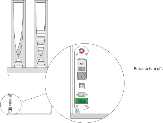 5 Turn off the BenchCel Microplate Handler. To do this, on the back of the device, press the power switch to the off (O) position.