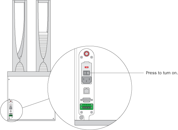 1 Turn on the BenchCel Microplate Handler. To do this, on the back of the device, press the power switch to the on (I) position.