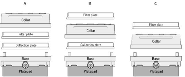 • Configuration C. The filter plate is not part of the station assembly. The robot will move the filter plate to the station during the protocol run after the assembly process is finished.