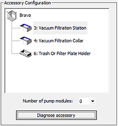 3 In the Accessory Configuration area, highlight Vacuum Filtration Station, and then click Diagnose accessory.