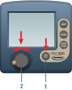 1 At the controller panel, locate the power button (1) and the selection knob (2), as the following figure shows.