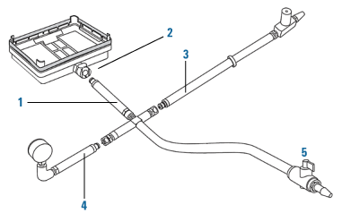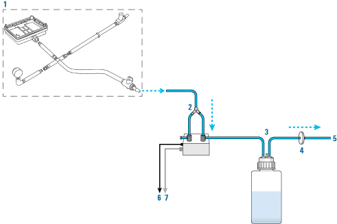b Connect the input tubing from the waste bottle (3) to the three-way connector.