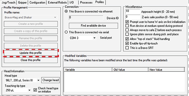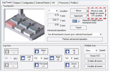 8 The Bravo head moves to the deck location and moves down so that the pipette tip is approximately 2 mm above the Magnetic Bead Accessory.If necessary, adjust the x- and y-axes at this point, and then jog the head down by 2 mm to the teachpoint z‑axis and click Teach.