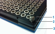 This topic describes how to set up the Magnetic Bead Accessory on a standard platepad.Figure. Magnetic Bead Accessory