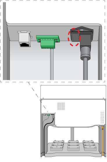 1 Shut down the Bravo Platform, and unplug the power cable from the rear panel connector.