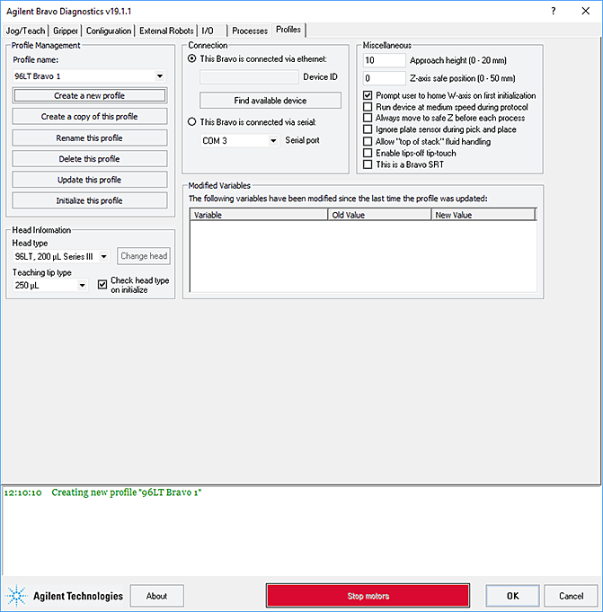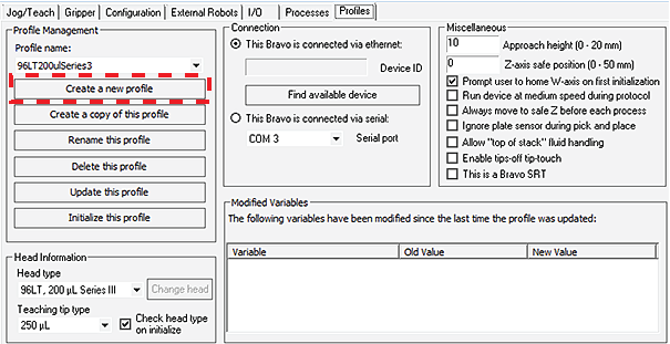 VWorks software users with Administrator or Technician privileges (advanced users) can create and manage profiles for the Bravo Platform.Each Bravo Platform that you install requires a unique profile, which enables communication settings specific to the given instrument.