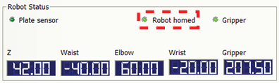Homing the robot sends the robot to the factory-defined home position for each of the axes of motion. To home the grippers, see Homing the robot grippers.