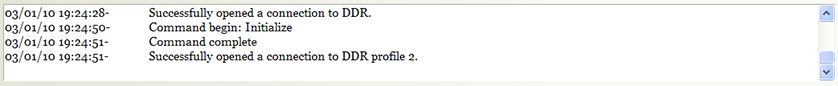 Viewing the DDR Diagnostics log area The log area at the bottom of the dialog box shows the status of the commands or actions issued while you are working in the dialog box. Related information For information about... See... Homing the robot Homing the robot and grippers Moving the robot into the safe zone Moving the robot into the safe zone Disabling and enabling the robot motors Disabling and enabling the robot motors Changing the robot speed Changing the robot speed Stopping the robot motors Stopping the robot motors Jogging the robot Jogging the robot Opening and closing the robot grippers Opening and closing the robot grippers Checking the robot microplate sensor Checking the robot microplate sensor Changing the robot display Changing the robot display