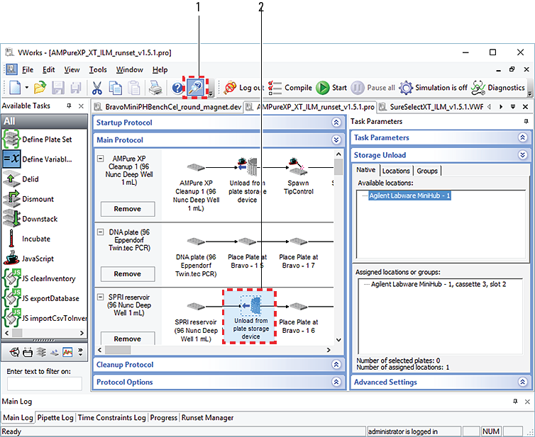 In the main window of the VWorks software, click the help button . The pointer changes to . Notice that the different icons or areas are highlighted as you move the pointer over them.