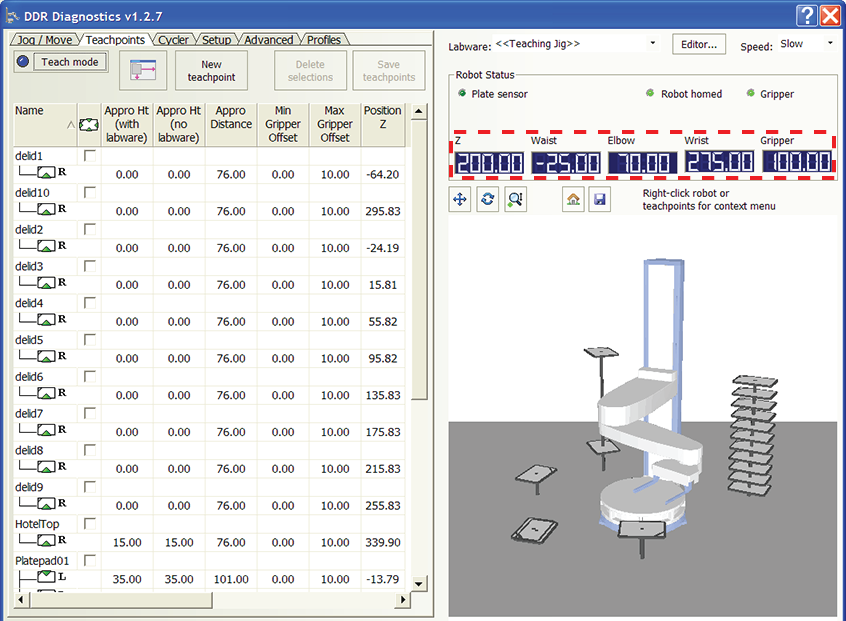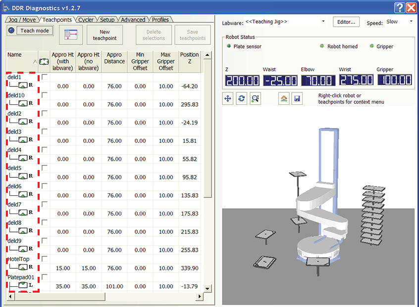 • Direct Drive Robot teachpointsA Direct Drive Robot teachpoint consists of the following: