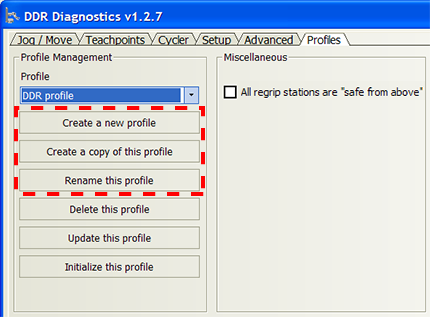 1 In the Direct Drive Robot Diagnostics Profiles tab, select the profile you want to edit in the Profile Management area.