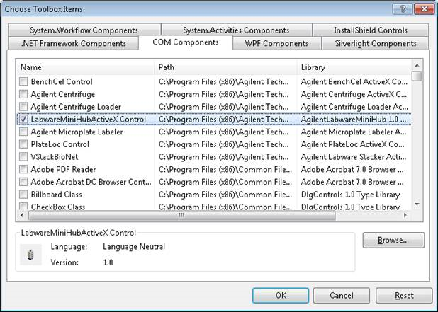 Labware MiniHub ActiveX control enables third-party applications to interface with the