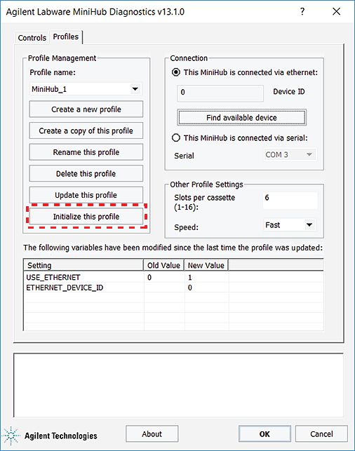 • Labware MiniHub Diagnostics. To control the Labware MiniHub using Labware MiniHub Diagnostics, initialize the profile in Labware MiniHub Diagnostics.