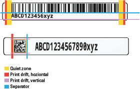 • Quiet zones. The barcode symbology requires quiet zones on each end to facilitate machine readability. The required size of the quiet zone can vary depending on the symbology.