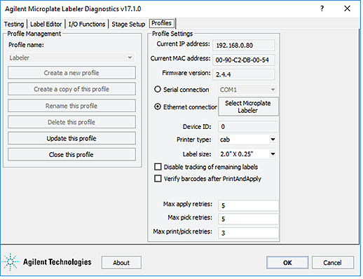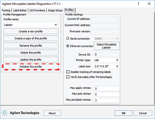 • Microplate Labeler Diagnostics. To control the Microplate Labeler using Microplate Labeler Diagnostics, initialize the profile in Microplate Labeler Diagnostics.