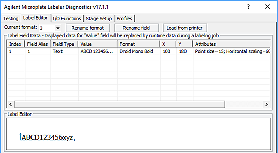 Template 3—Single large text field only Example label Label Editor parameters and preview Overview Template 3 is a text-only label format, designed to be paired with the barcode-only label in Template 2. Specs Maximum data: 24 characters, any type Design features • The Droid Mono Bold font offers consistent character spacing, discernible characters, and a modern, look. • The text height is maximized within the height of the label. • A blank margin above the text allows for 0.76-mm (0.030-in) vertical print drift. • A blank margin below the text allows room for lowercase descenders, such as g or q, while also providing allowance for vertical print drift. • The generous left margin allows for horizontal print drift. The print drift specification is ±0.76-mm (±0.030‑in) for positioning the edge of the label to the edge of the label backing. • The size of the right margin varies depending on the number of characters. • The horizontal scaling of the text field squeezes enough characters onto the label to match the maximum data encoded in the barcode on the Template 2 label.