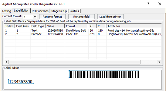 Template 4—Big text field and Code 128 Example label Label Editor parameters and preview Overview Template 4 provides the best machine readability and human readability in a single label for those with smaller amounts of data (10 numerals or 6 alpha characters, maximum). Specs Maximum data: 10 numerals or 6 alpha characters (The maximum alphanumeric length depends on the character mix.) Design features • Code 128 is very common and offers good data density for this size label. • Narrow bar width gives good readability and accommodates a good amount of data. • The blank margin to the right of the barcode will fluctuate in size with the amount of data encoded. The example shows the maximum length barcode while still maintaining a 3.81-mm (0.15-in) right margin. • The barcode extends from top to bottom to maximize vertical redundancy, which facilitates machine readability. • Minimal space separates the barcode and the text. • The blank margin separating the text field and the barcode is 0.64‑mm (0.025-in) wider than the minimum quiet zone required for machine readability. • The Droid Mono Bold font offers consistent character spacing, discernible characters, and a modern look. • The text height is maximized within the height of the label. • A blank margin above the text allows for 0.76‑mm (0.030‑in) vertical print drift. • A blank margin below the text allows room for lowercase descenders, such as g and q, while also providing allowance for vertical print drift. • The left margin allows for horizontal print drift. • The horizontal scaling of the text field squeezes enough characters onto the label to match the maximum data encoded in the barcode.