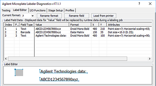 Template 7—Data Matrix symbology with two small text fields Example label Label Editor parameters and preview Overview The use of the Data Matrix symbology with this dot size allows a large amount of data to be encoded into a symbol that only uses a small portion of the label. Template 7 leverages the large remaining space for two text fields. The upper text field can contain any extra information that might be useful on the label. The lower text field is sized to match the same number of characters that can fit in the barcode. Specs Maximum data: 36 numerals or 25 alpha characters (The maximum alphanumeric length depends on the character mix.) Design features • Data Matrix is a very dense and a very popular 2D symbology. • The dot size used in this template is relatively conservative for readability, but still allows for twice the amount of data that can fit on a label with the Code 128 symbology. • Generous margins are provided on both the right and left of the barcode. • The blank margin above the barcode allows for 0.89‑mm (0.035‑in) vertical print drift. • The blank margin below the barcode will vary depending on the amount of data encoded. The example shows the maximum data length while still maintaining a 0.89‑mm (0.035‑in) bottom margin. • The barcode is positioned to the left of the text in the event that too much data is used for the text fields. In this case, the text will run off the right edge of the label and will not interfere with the barcode. • The Droid Mono Bold font offers consistent character spacing, discernible characters, and a modern, attractive look. • Text field 1 (top) offers good legibility and space for up to 26 characters. • Text field 2 (bottom) compresses the horizontal scaling to match the data that can be encoded in the symbol. • The text fields are left-justified to allow for the longest possible strings in the available space. • Margins above and below the text are adequate to allow for some vertical print drift.