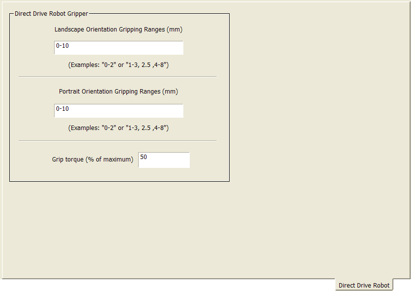 The Direct Drive Robot uses three types of gripper offset ranges to determine the most compatible grip position for the labware type: