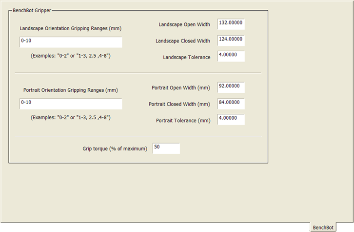 If you are using the BenchBot in your automation system, you must specify the robot properties for the labware that the robot will handle. Because the weight, material, and design varies, you specify the properties for each labware type.