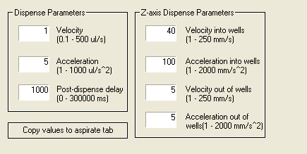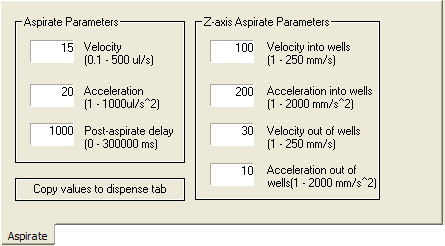 5 On the Aspirate tab, type the values for the following aspirate parameters.