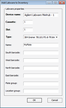 4 In the Add Labware to Inventory dialog box, set the labware properties: