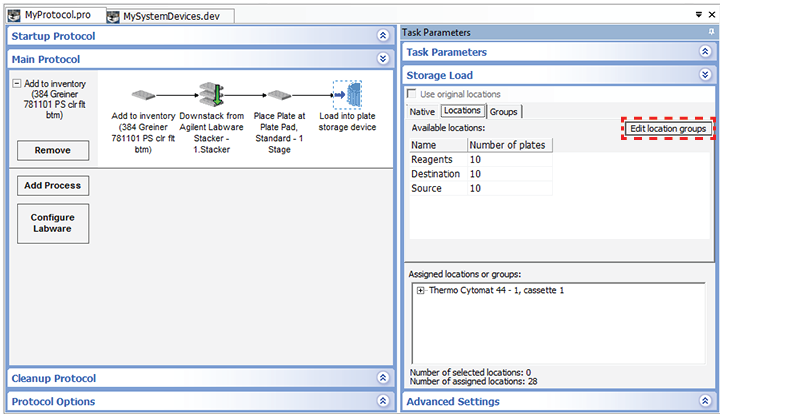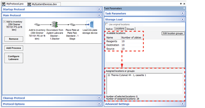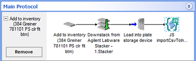 2 Write the protocol described in Loading labware into storage devices and updating the inventory database. You do not need to include the barcode-reading task.