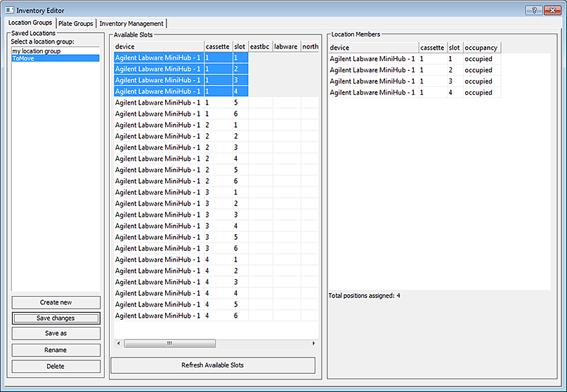 13 Open the Inventory Editor, and click the Inventory Management tab to make sure that the microplates moved as expected.