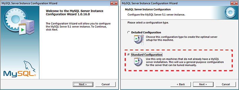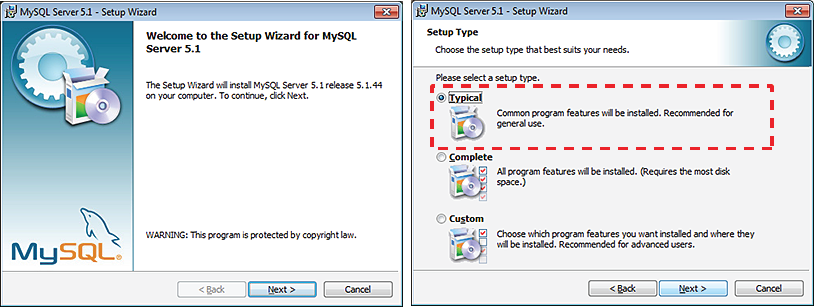 2 When the MySQL Server 5.1 Setup Wizard opens: