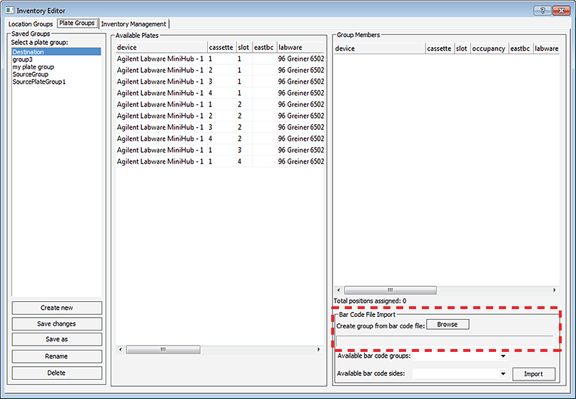 IMPORTANT All labware with barcodes listed in the selected barcode input file series must already be in the storage device. To load labware into storage devices, see Adding labware information in the inventory database.